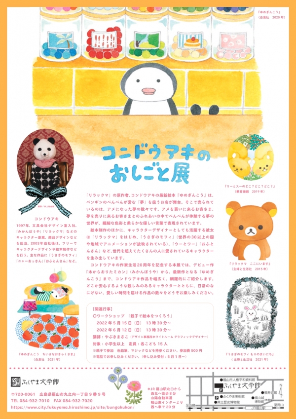 ふくやま文学館「コンドウアキのおしごと展 作家生活20周年記念~「リラックマ」「うさぎのモフィ」から「ゆめぎんこう」まで」