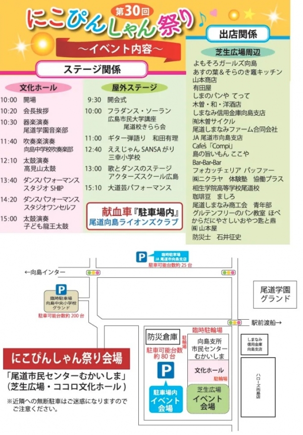 ステージでは地元グループによるダンスや太鼓演奏のほか、ライブイベントなども開催。 -