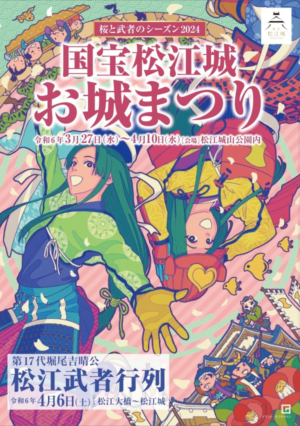 松江開府の祖、堀尾吉晴公と忠氏公、堀尾衆一行が 400 年の刻をこえて松江城に入城する様子を再現した絢爛豪華な時代絵巻!