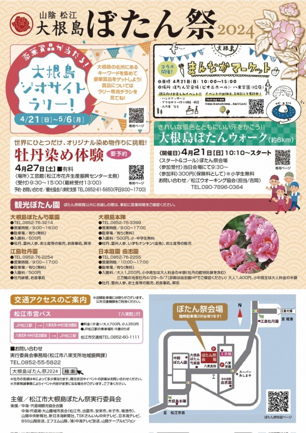 0852-55-5822 (松江市大根島ぼたん祭実行委員会事務局)