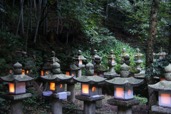 点火される灯籠・提灯・コップローソクによって、境内はとても幻想的な光に包まれます。