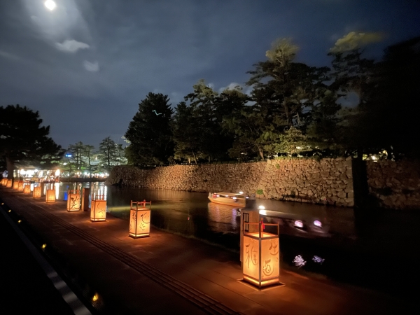 手作り行燈コンテスト、松江城の夜間登閣や、堀川遊覧船の夜間運航なども実施予定。行燈のほのかな光に照らされた風情ある夜の塩見縄手を、ゆっくりと堀川を進む遊覧船からお楽しみください。