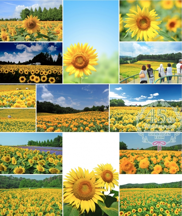65,000平方メートルもの広大な花畑にビタミン色の鮮やかなひまわりが咲き誇り、太陽のような笑顔で包まれます