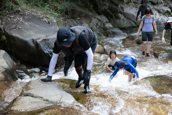 全長約1㎞の涼しい沢をのぼります。お子さんも参加可です。