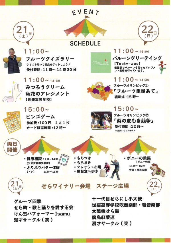 秋の世羅高原を満喫できるまつりに、ご家族そろってお越しください。 -