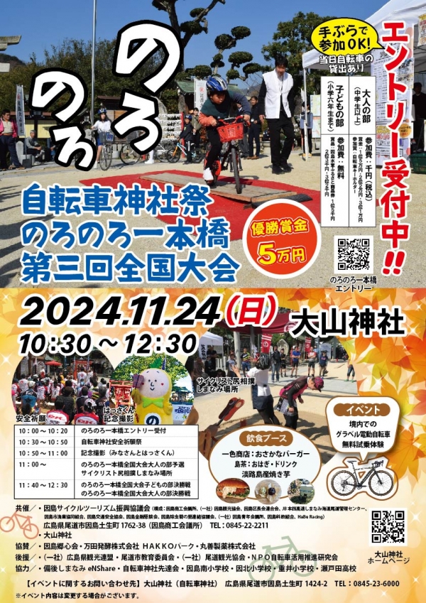 このほか、「安全祈願祭」や「サイクリスト尻相撲しまなみ場所」、「飲食ブース」、「グラベル電動自転車無料試乗体験」など盛りだくさんです。 -