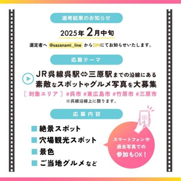 JR呉線の呉駅⇔三原駅までの沿線にある素敵なスポット写真を募集中です!