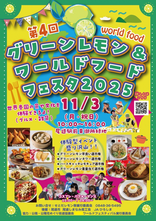 グリーンレモンの旬を楽しみながら、レモン競技やおいしいグルメ、雑貨にキッチンカーなど、みんなで楽しめるコンテンツが大集合!また、各国の食や文化を楽しめる“ワールドフードフェスタ”エリアも同時開催。さわやかなレモンの香りと一緒に、世界のおいしい・たのしいをまるごと味わいに来てください!