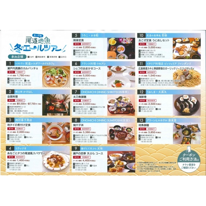 2.アプリ内で「尾道季節の地魚 冬のエールツアー」を選択し、専用クーポンを購入