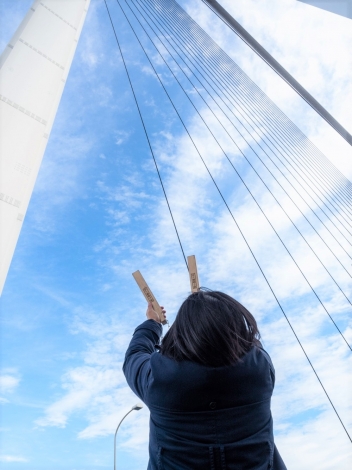 この橋の主塔の真下では手を叩くとパーンと空に向かって反響する「鳴き竜」が体験できます。これはしまなみ海道ではこの橋だけのものです。