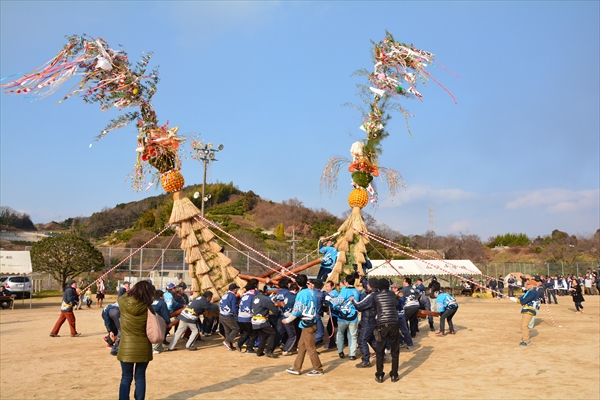 この山波のとんどは江戸時代の元禄年間より行なわれていたと伝えられており、稲わらで美しく作り上げ、とんどの上部にその年の干支の飾りをつけられるのが特徴的です。