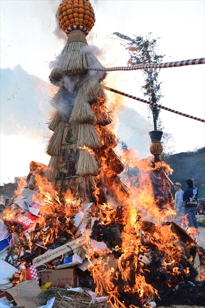 「とんど」とは尾道周辺の地方で行われている行事で、正月の神迎えの依り代(よりしろ)として用いられた注連飾りや門松などを燃やし、その炎や煙とともに再び天に歳神を送ります。
