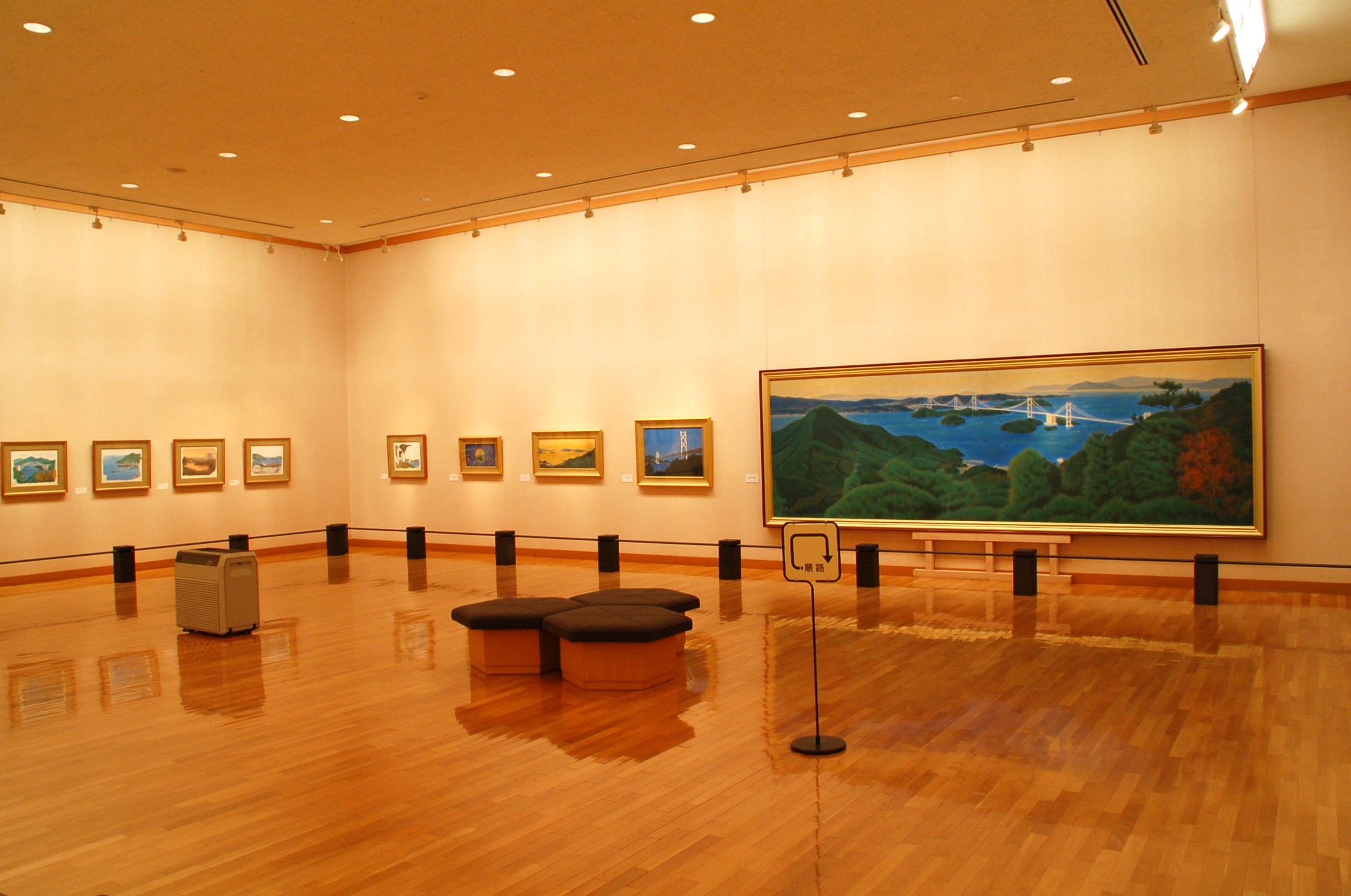 瀬戸田町出身の日本画家・平山郁夫の子供時代の作品やシルクロードの大作などを展示しています。