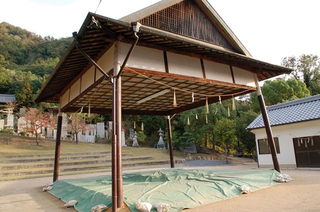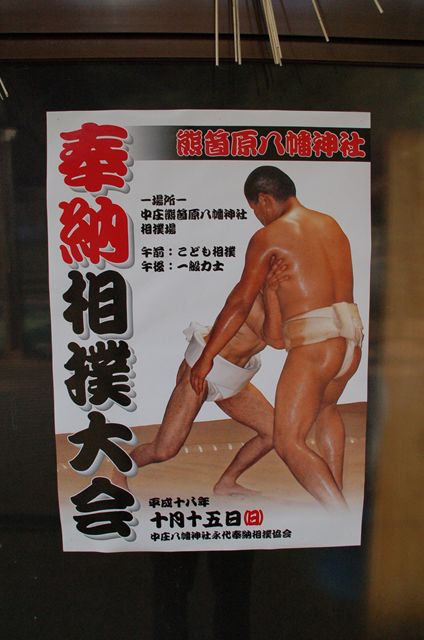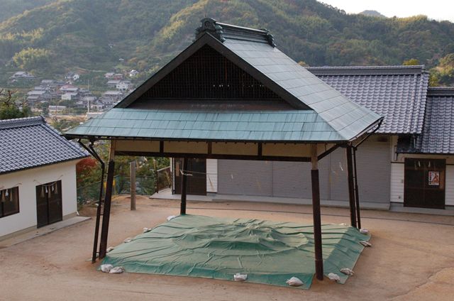 境内にある立派な土俵では毎年10月に奉納相撲大会が行われ、島内の子供や大人の力士による熱戦が行われます。