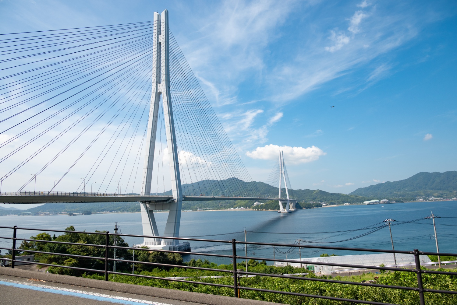 しまなみ海道の尾道側から4番目の橋で、広島県と愛媛県との県境にかかる斜張橋です。