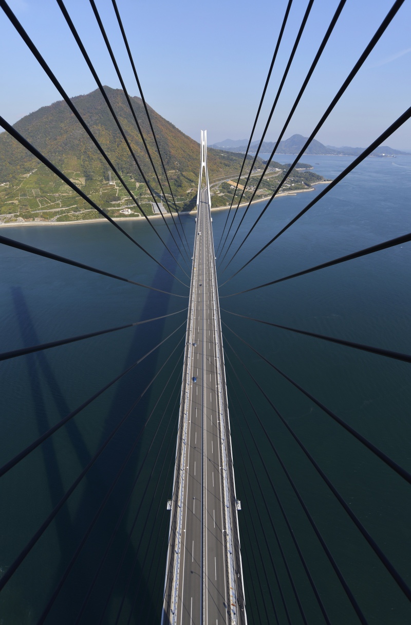 この橋はしまなみ海道で最後に開通した橋のひとつで(新尾道大橋、多々羅大橋、来島海峡大橋)、完成時には斜張橋として世界最長を誇りました。