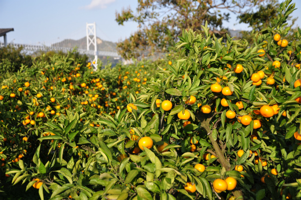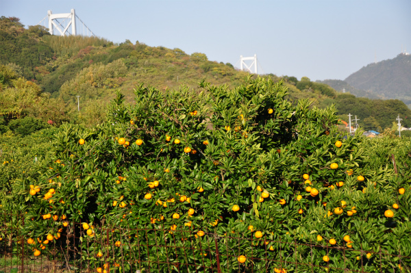 因島大橋のそばにあるみかん園です。この農園では2か所のみかん畑があり、因島大橋を見ることもできます。