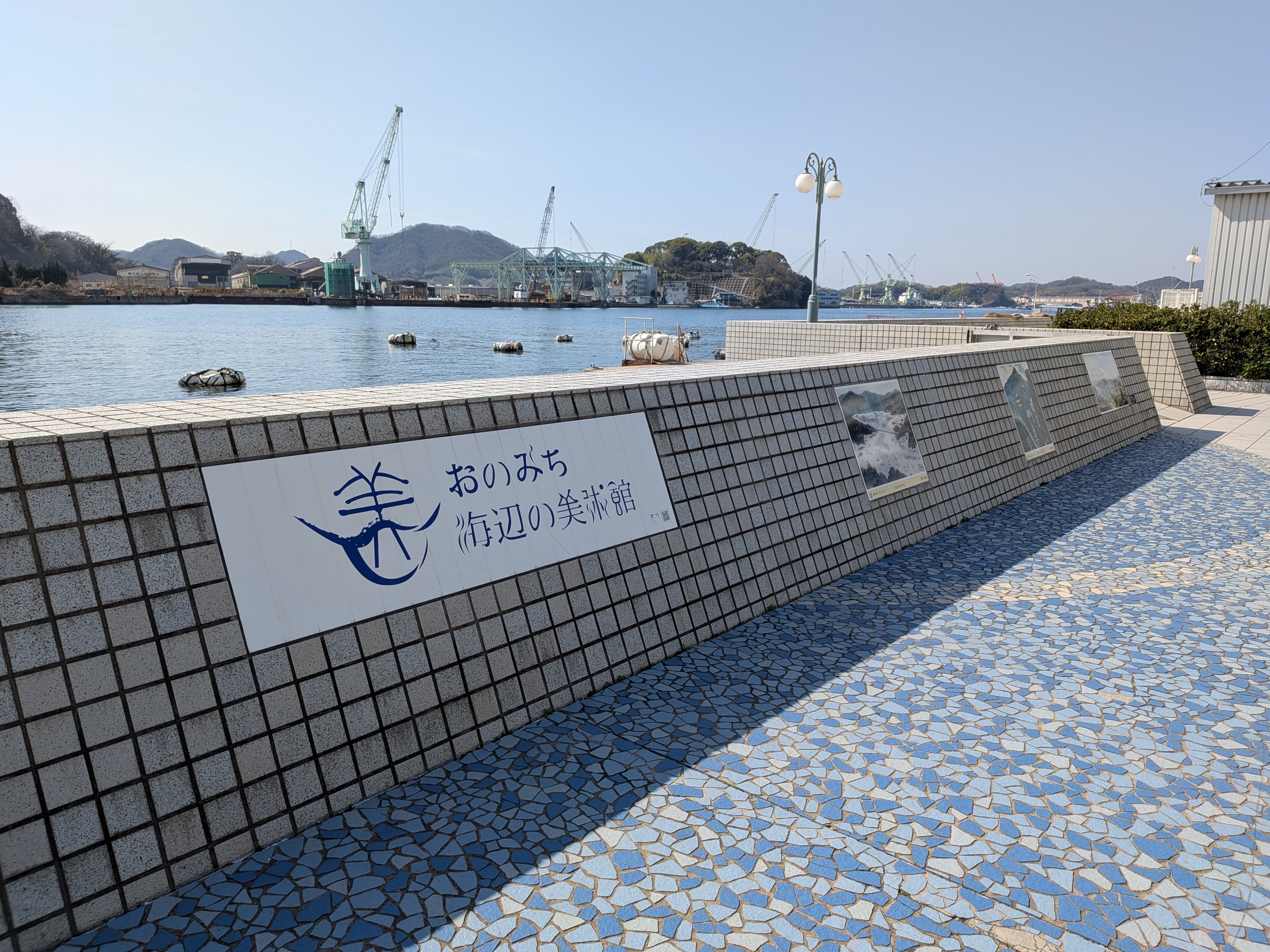 尾道水道沿いの遊歩道の壁面約150mに渡り、尾道の絵画コンクール「絵のまち尾道四季展」のグランプリ作品などをタイルにして展示しています。