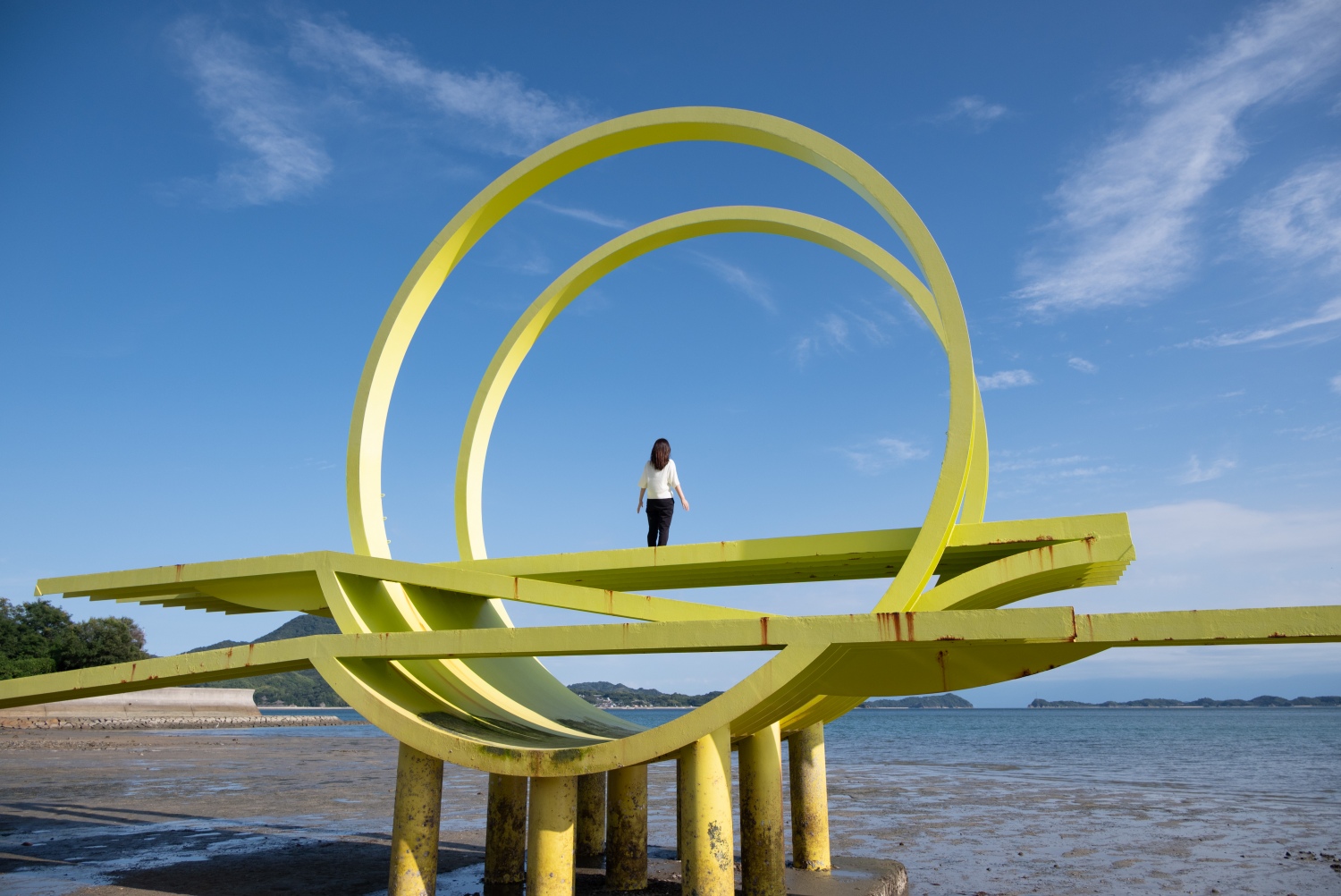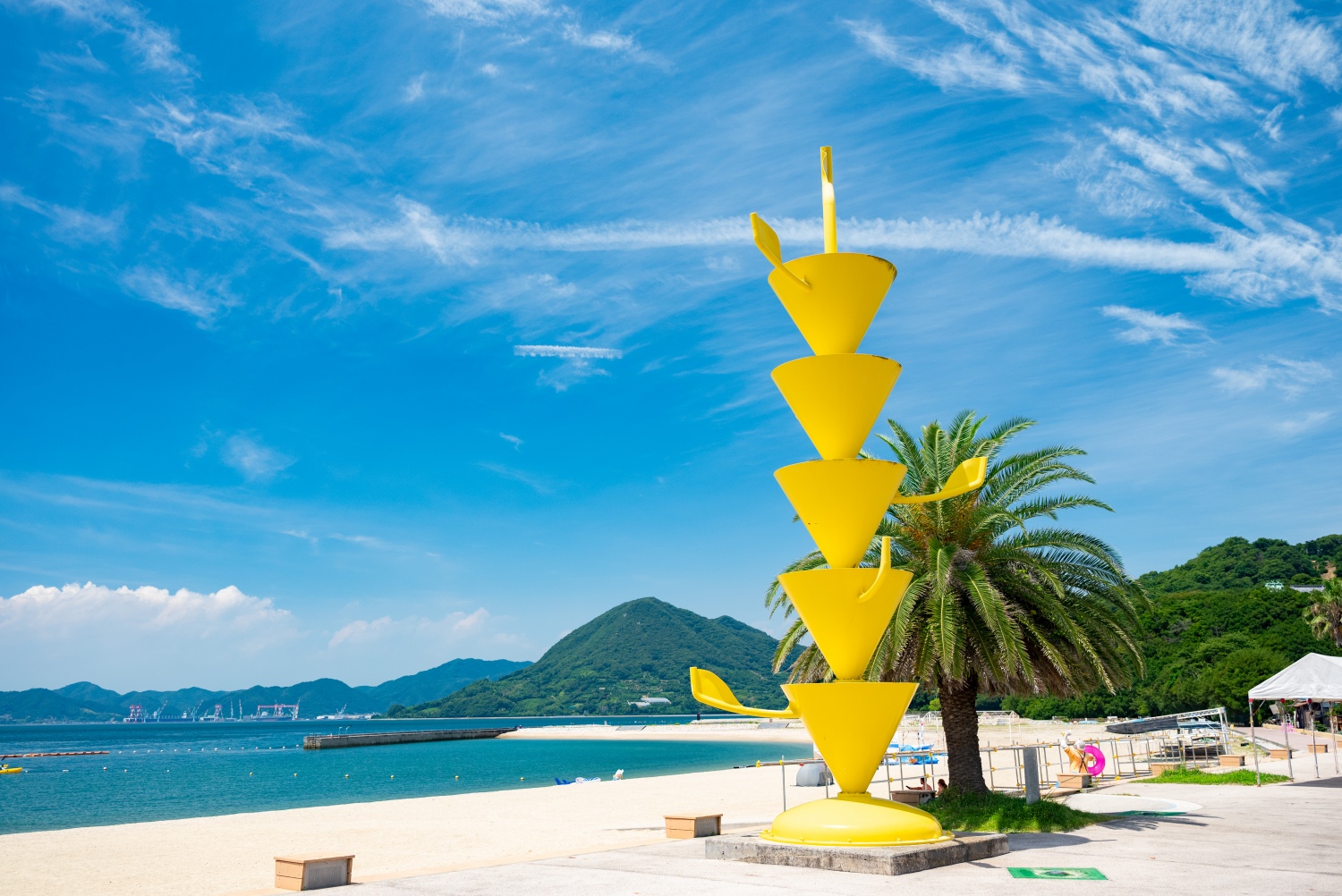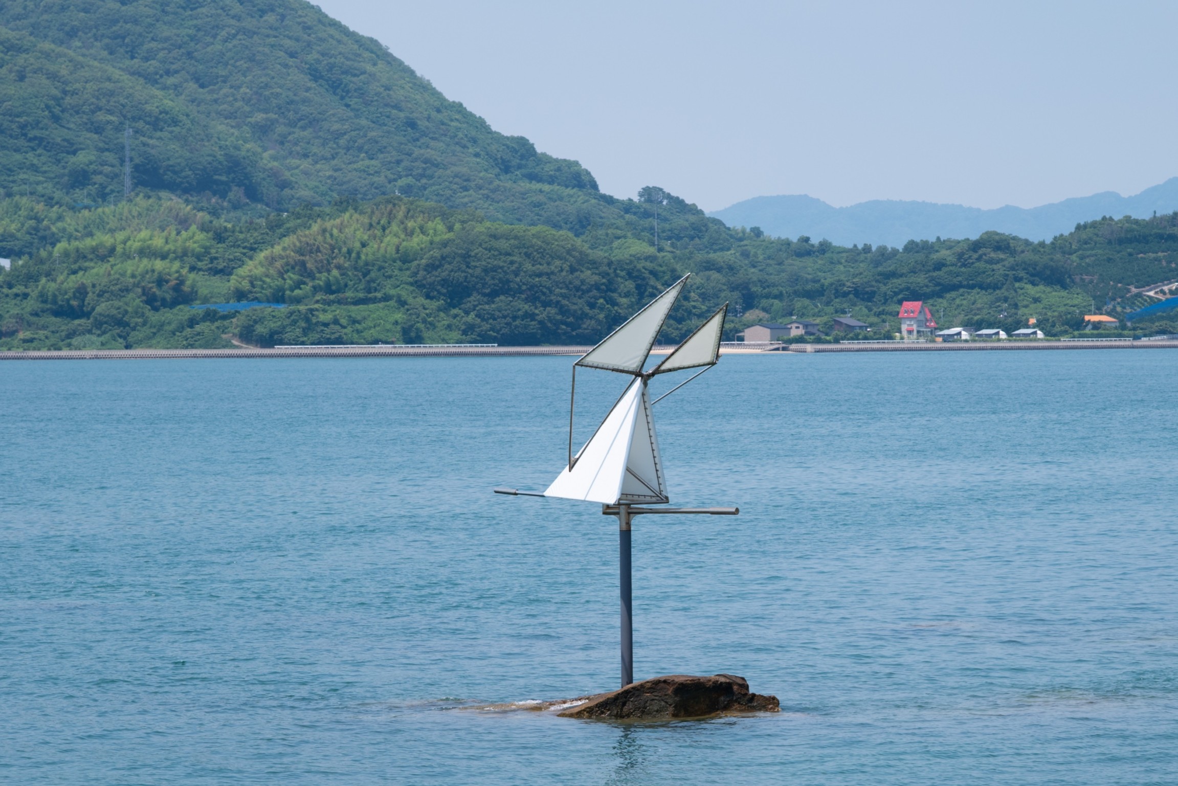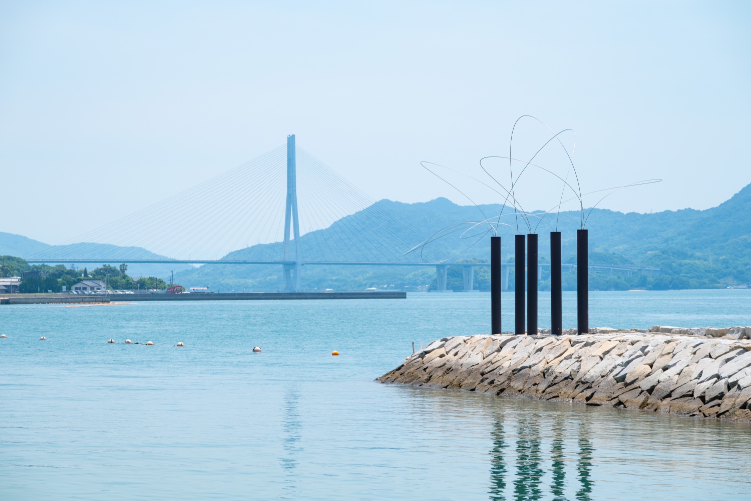 生口島島内の至る所で不思議な形のオブジェを見ることができます。これは「島ごと美術館」の作品群で、全部で17作品が屋外に展示されています。