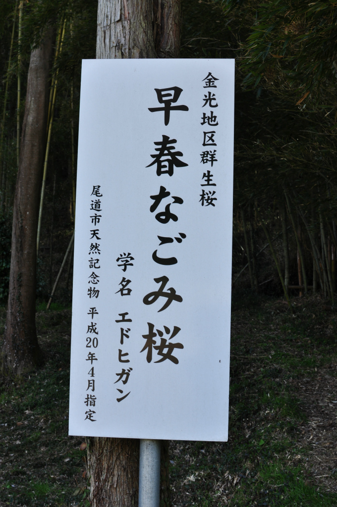 平成20年に尾道市の天然記念物となったエドヒガンザクラ。田園地帯の山間に群生していて樹高約30m。4月上旬になると雄大な花を楽しめます。
