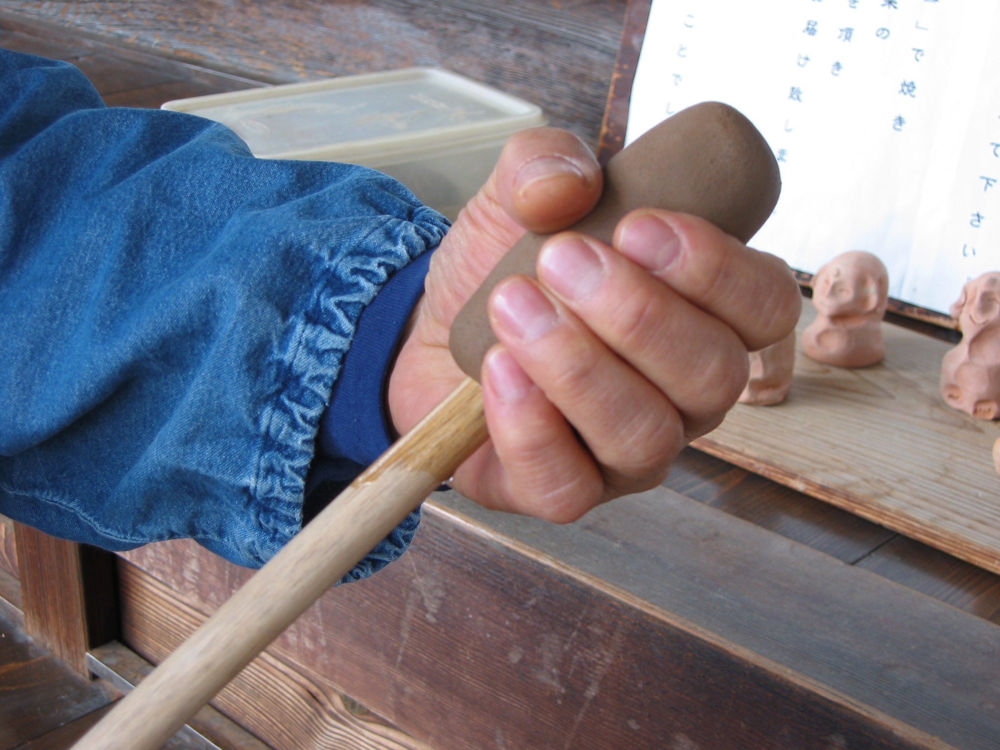棒に刺した粘土をギュッと握り、顔を描くだけで簡単にMy仏様の出来上がり。作ったあとはお寺で焼き上げ自宅まで送ってもらえます。お寺の方が親切に指導してくれるのでだれでも簡単に楽しめます。
