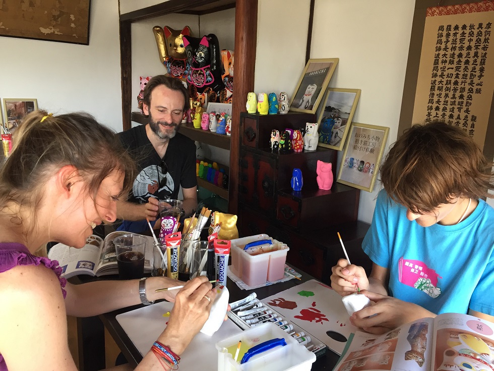 尾道水道を見渡せる山手の工房で、白い張り子の招き猫に絵付けをして世界に1つだけのオリジナルの招き猫を作りませんか?