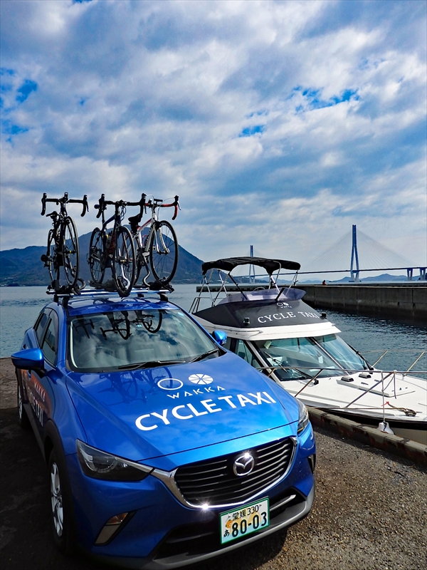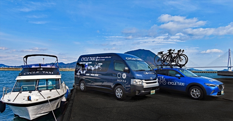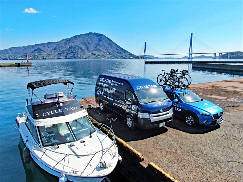 しまなみ海道サイクリングのサイクリスト専用のサポートタクシー(陸上・海上)です。