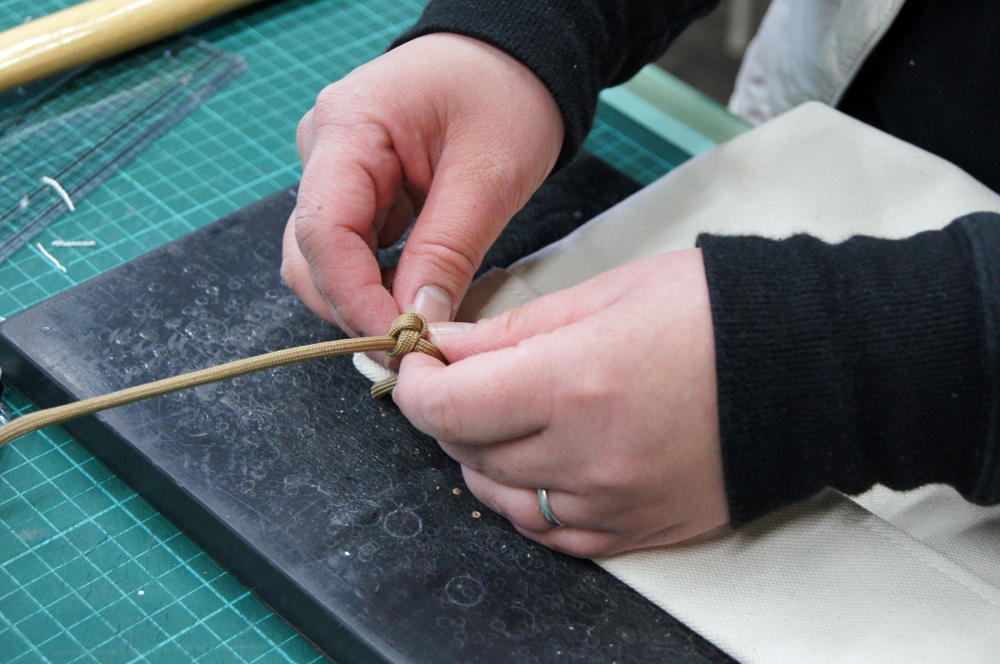 ③ ハトメ金具を取り付け、 ヒモのカラーを選択します。