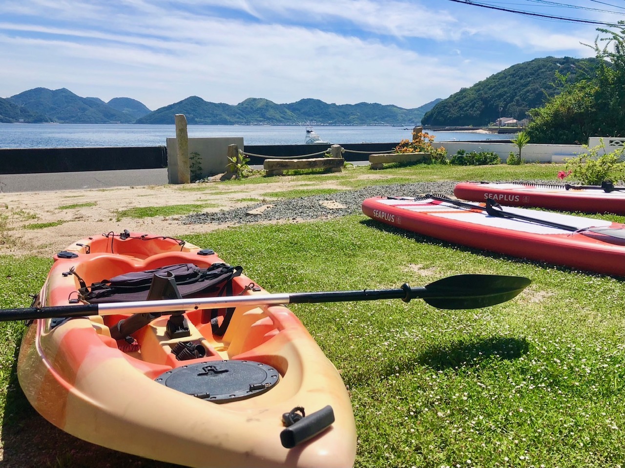 SUPやカヤックの有料レンタル可、初心者の方へ無料レッスンあり。