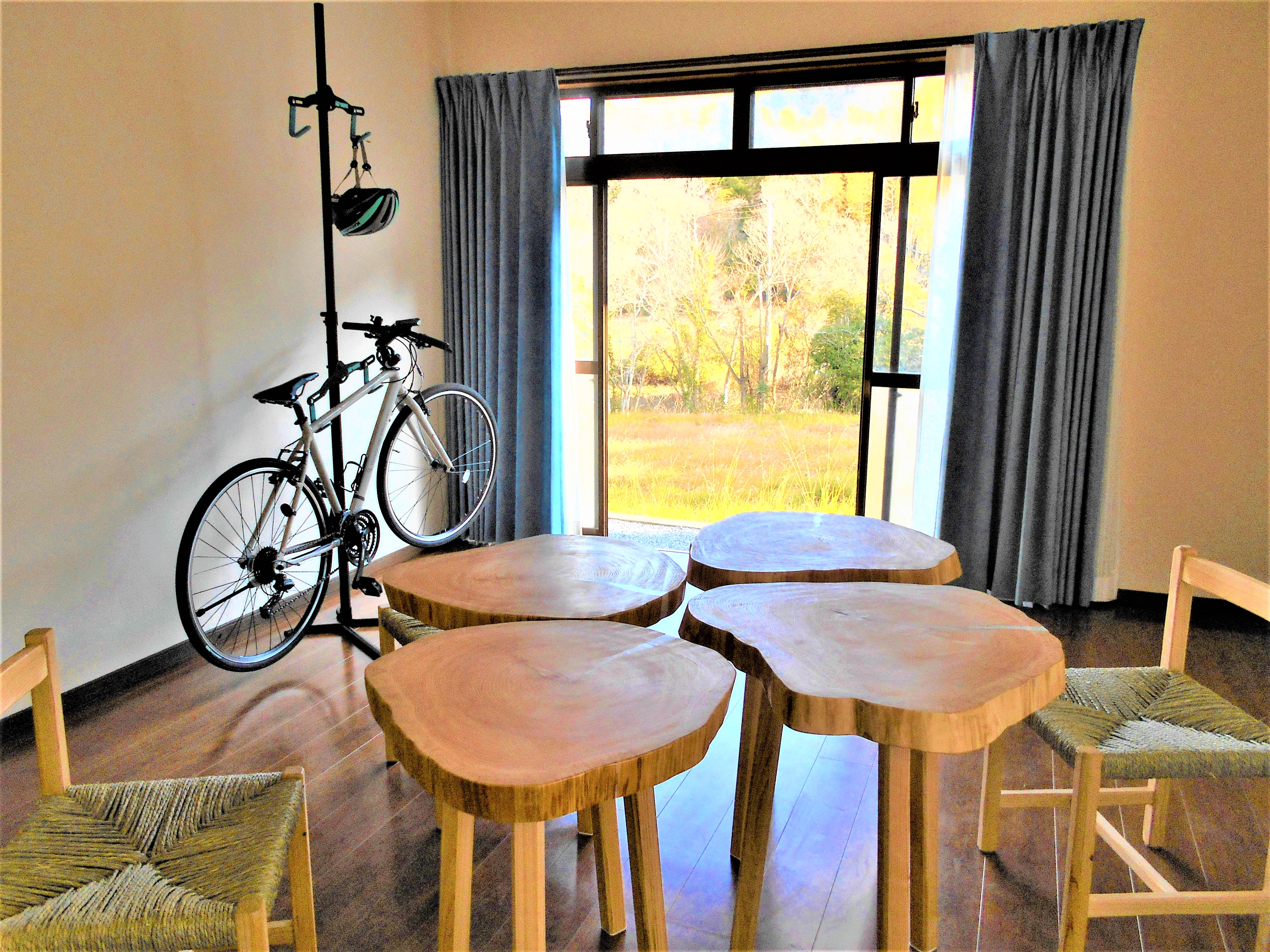 宿泊客向けに、電動アシスト付自転車2台(有料)とシティサイクル3台(無料)の貸し出しを行っています。