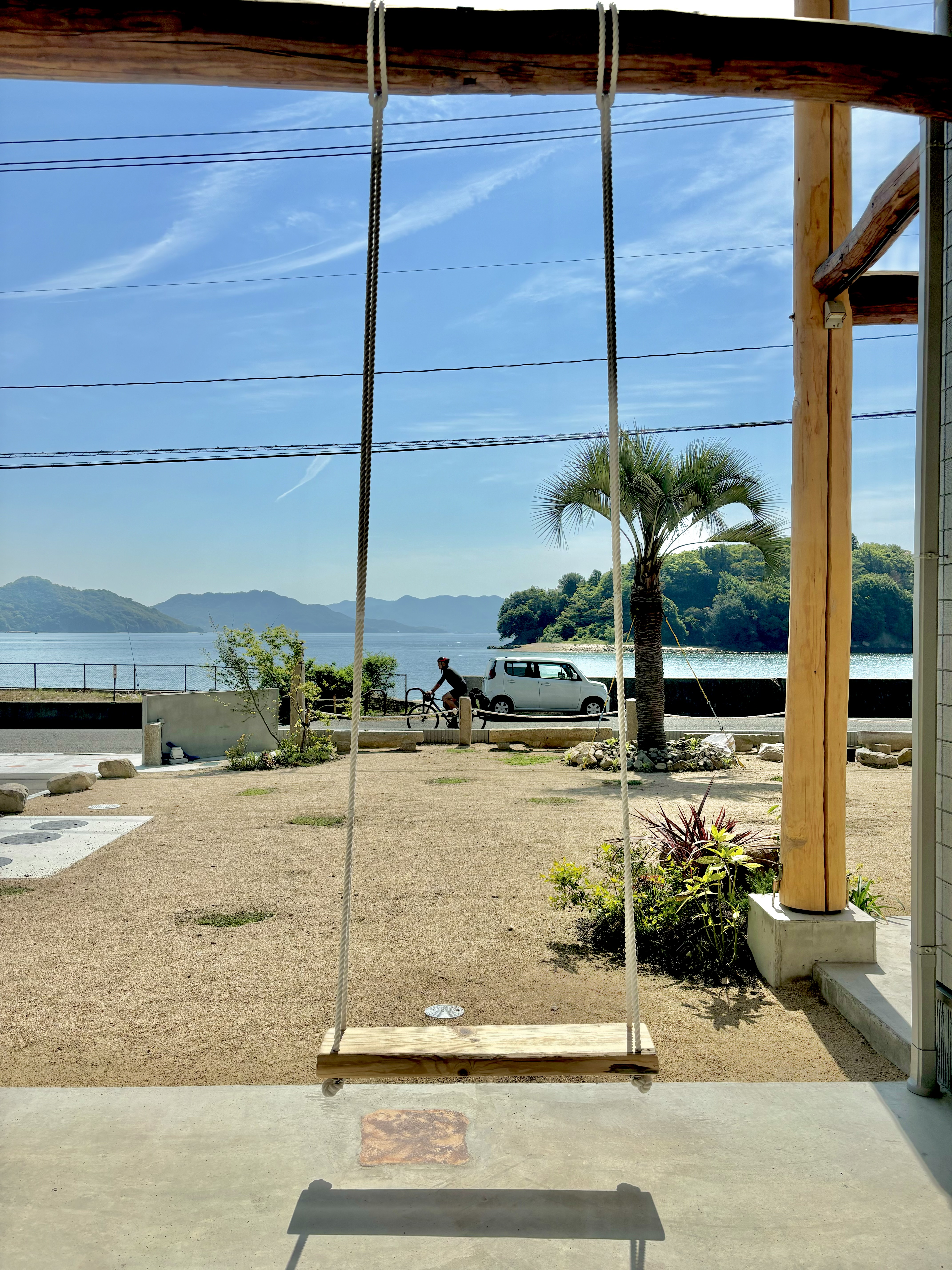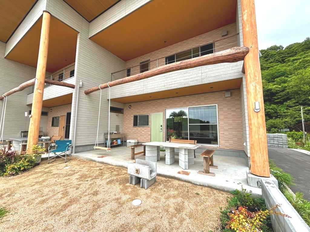午後は日陰となるので、夏の直射を受けずにBBQが楽しめ、海を眺められるテラスでブランコをお楽しみください。