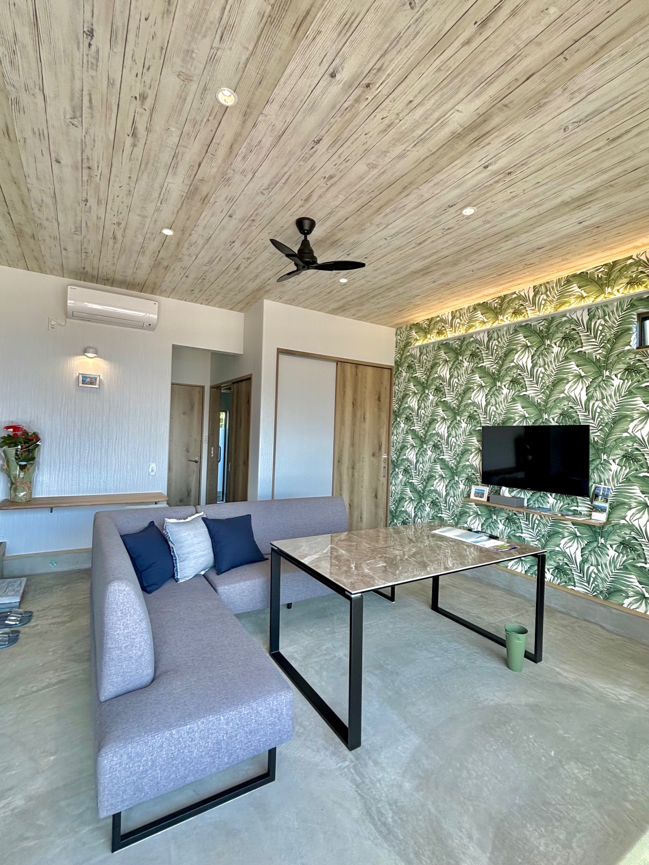 1階リビングは土足なので、海で泳いだあとすぐにシャワールームまでサンダルで入れます。